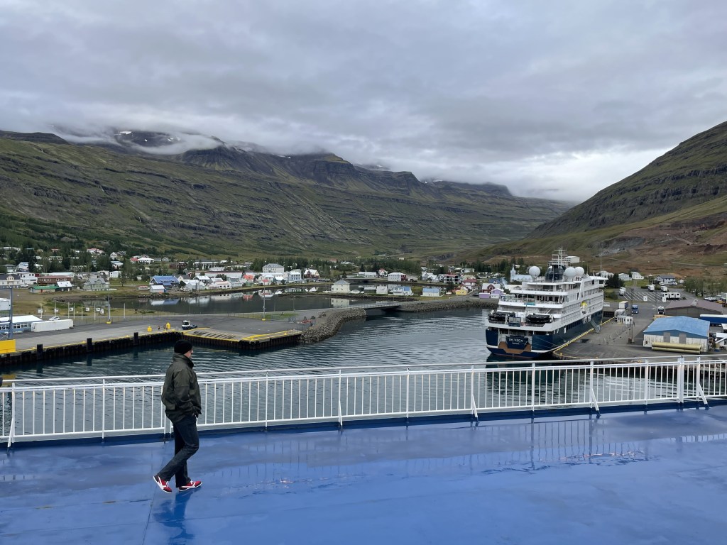 Und schon ist unser letzter Tag auf Island gekommen. Um 20.00 Uhr läuft in Seyðisfjörður unsere Fähre aus. Das Wetter bessert sich. Allerdings ist der Pass von Egilsstaðir nach Seyðisfjörður gemäss Strassenzustandsbericht schneebedeckt und wir sind gespannt, wie sich die Fahrt zum Hafen anfühlen wird.