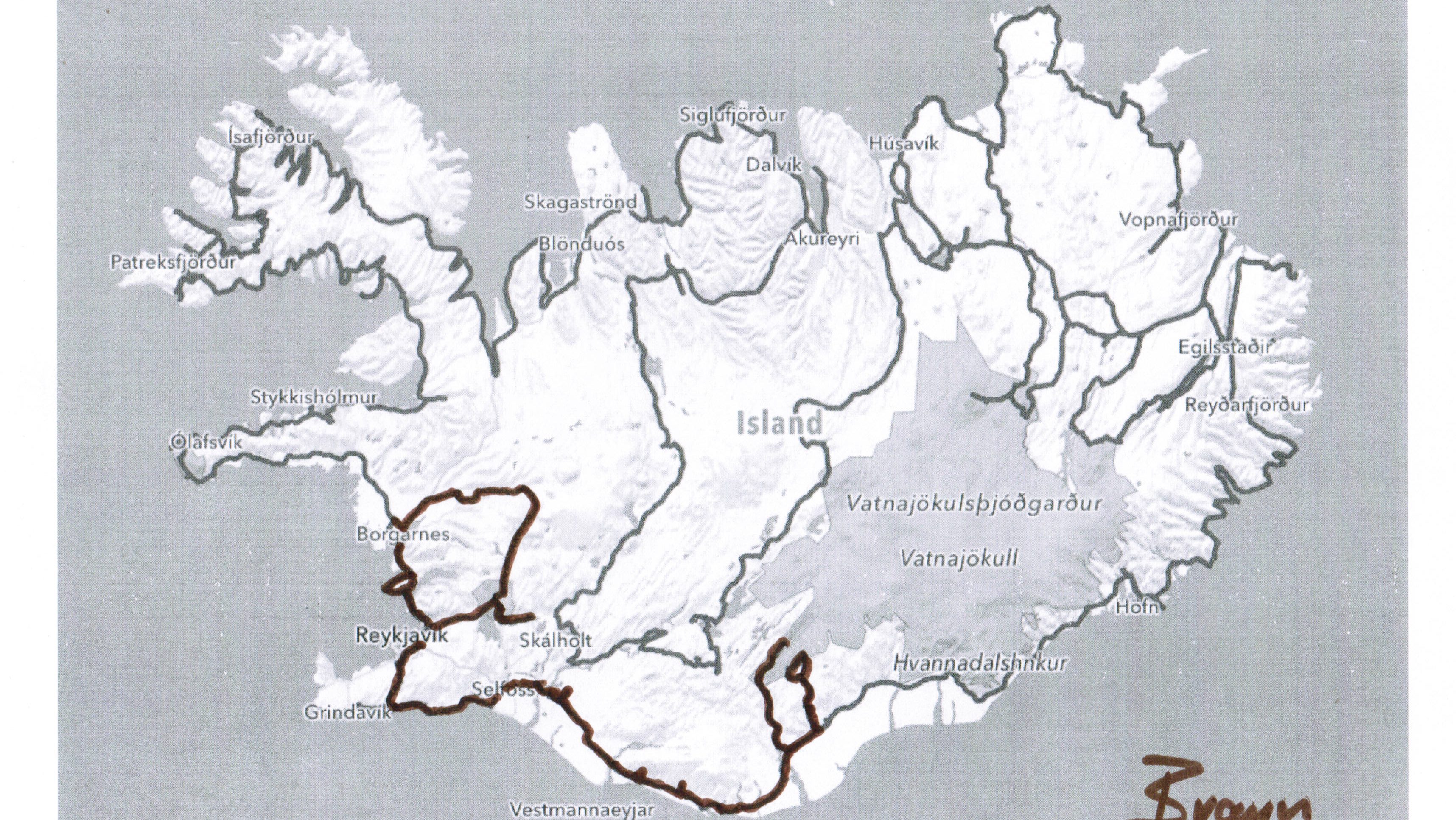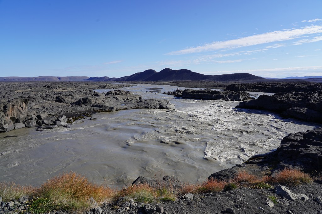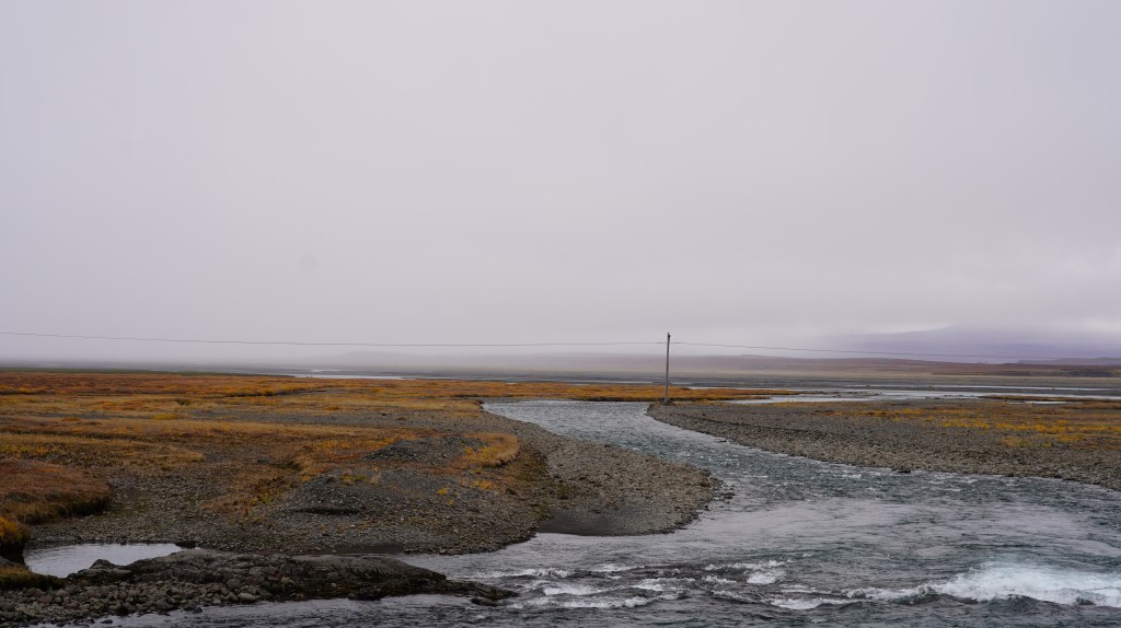 Auf der gut präparierten knapp 50 Kilometer langen Piste entlang der Jökla begegnen uns knapp eine Handvoll Autos. Die tiefhängenden Wolken verleihen dem Fluss und seinen Schwemmebenen mit ihren herbstlich leuchtenden Gräsern und Kleinsträuchern eine mystische Qualität. Nach einer entspannten Fahrt durch just dasselbe Delta wie vor einer Woche, allerdings auf der anderen Seite der Flüsse, erreichen wir die Ringstrasse. Hier endet der zweite Teil unserer Fahrt über den Arctic Coast Way. Wir haben den Nordosten Islands als sehr attraktiven und vor allem auch für Wanderungen lohnenswerten Teil Islands erlebt.