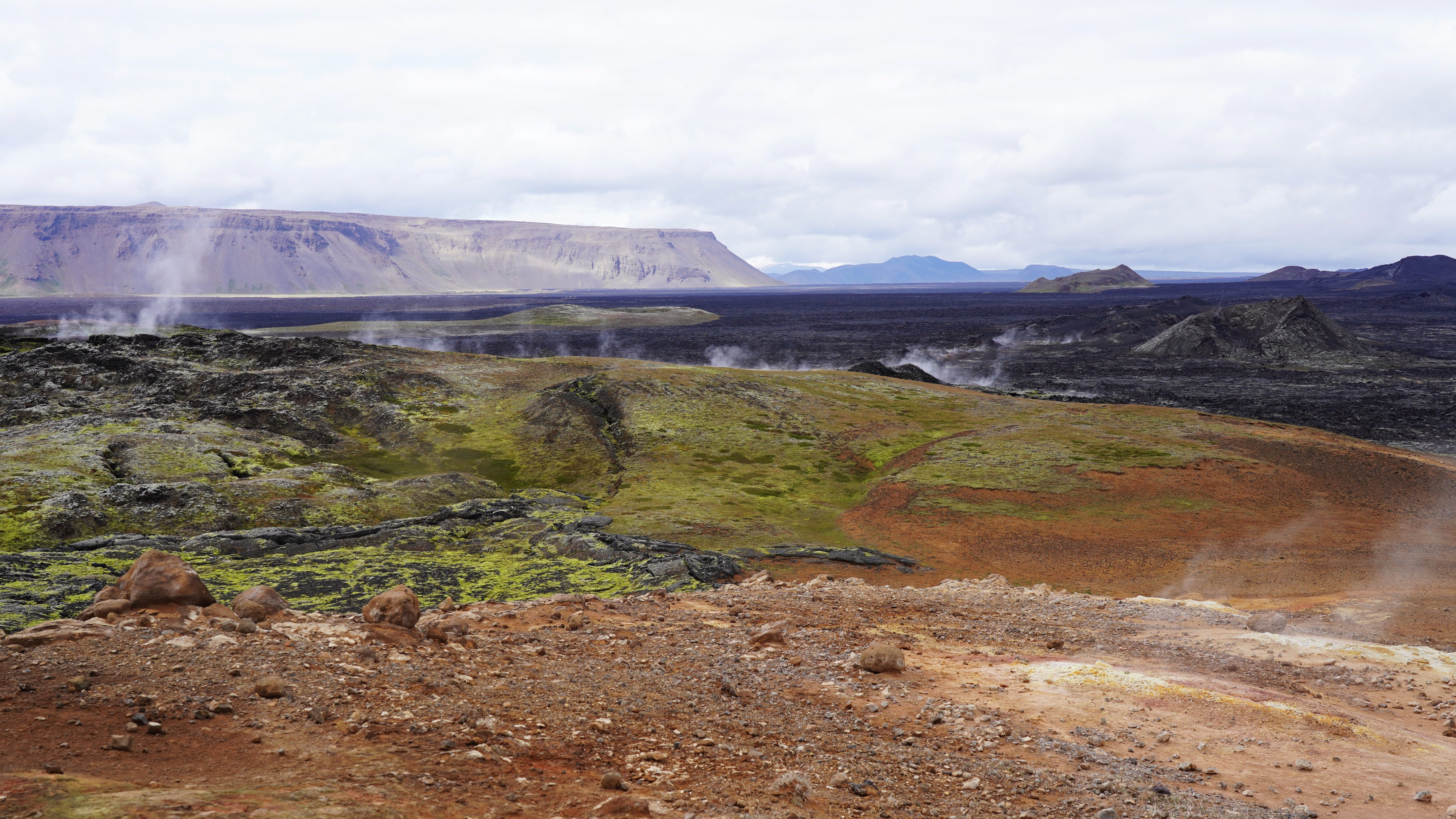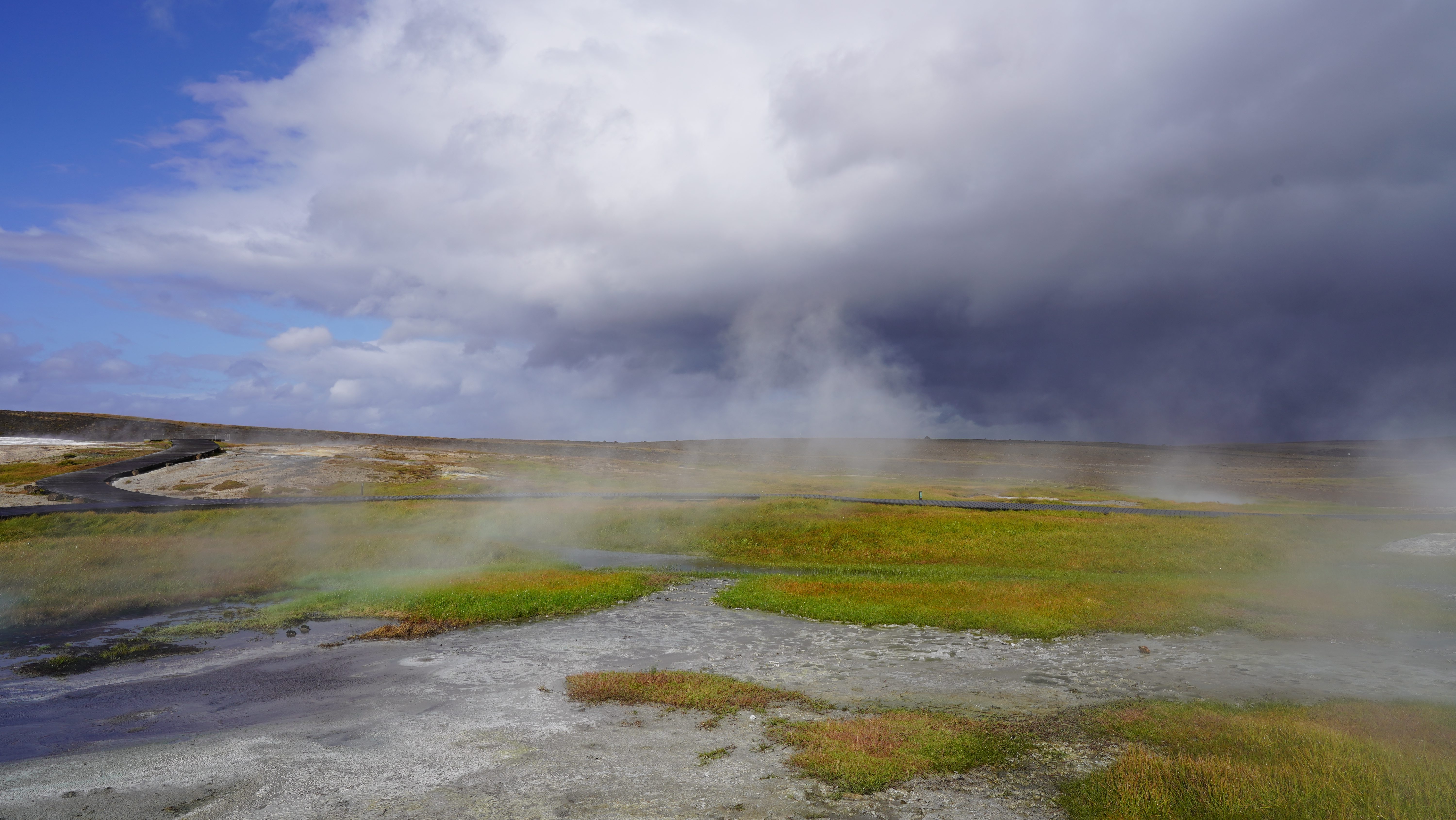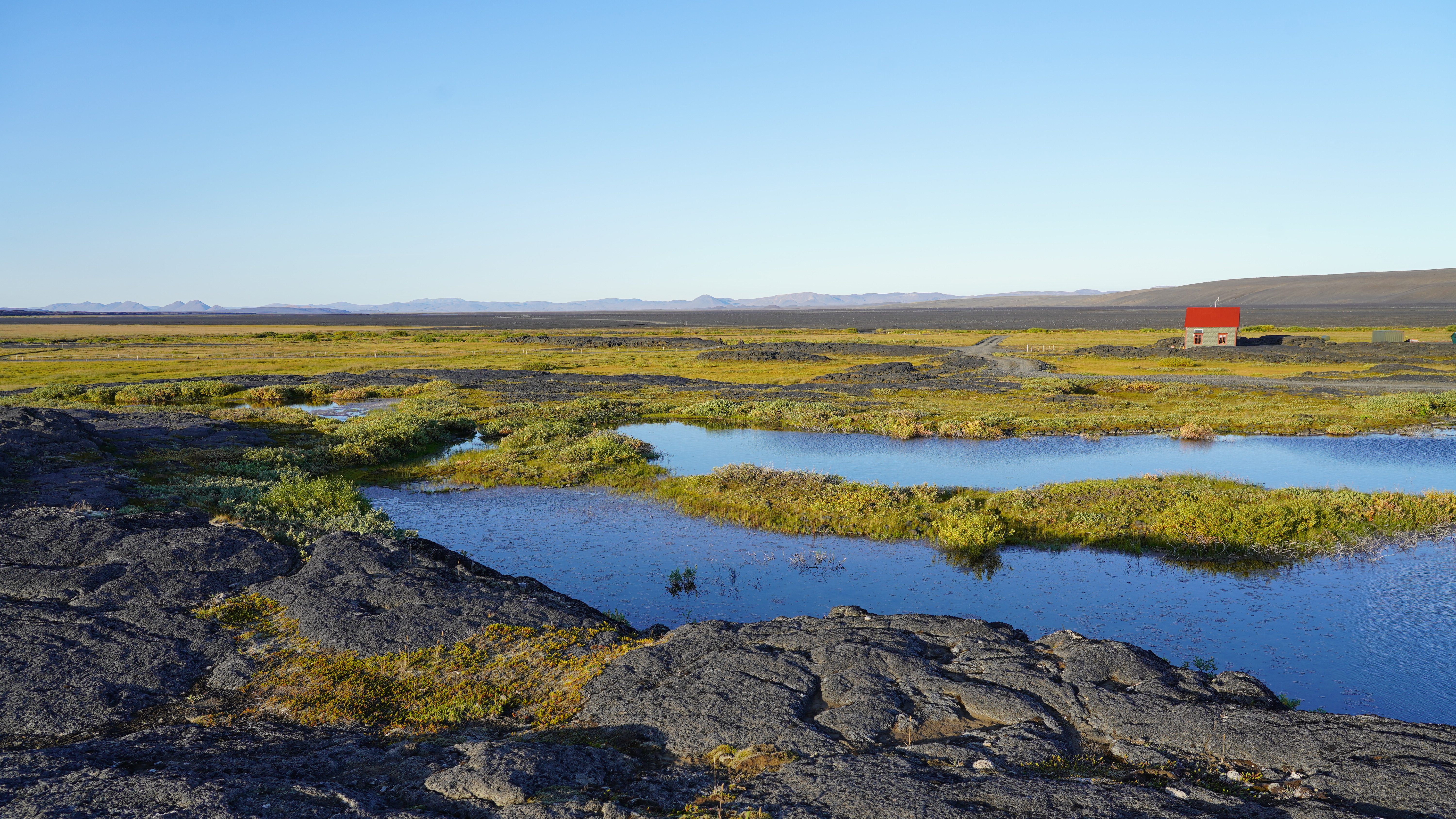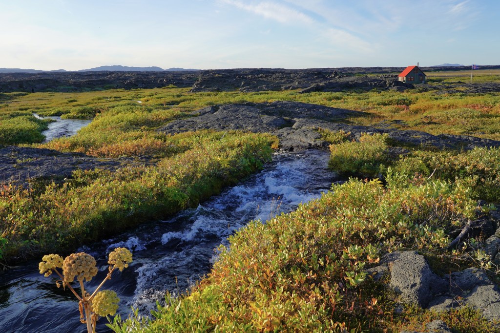 Den Tag schliessen wir am frühen Abend in Reykjahlíð am Ufer des Mývatn ab. Die Fahrt auf der Ringstrasse über die Hochebenen ist bei den wechselhaften und zuweilen fast wintrigen Verhältnissen ein Erlebnis für sich und im Gegensatz zu unserem ersten Aufenthalt in Reykjahlíð präsentiert sich die Natur nun in leuchtenden Herbstfarben.