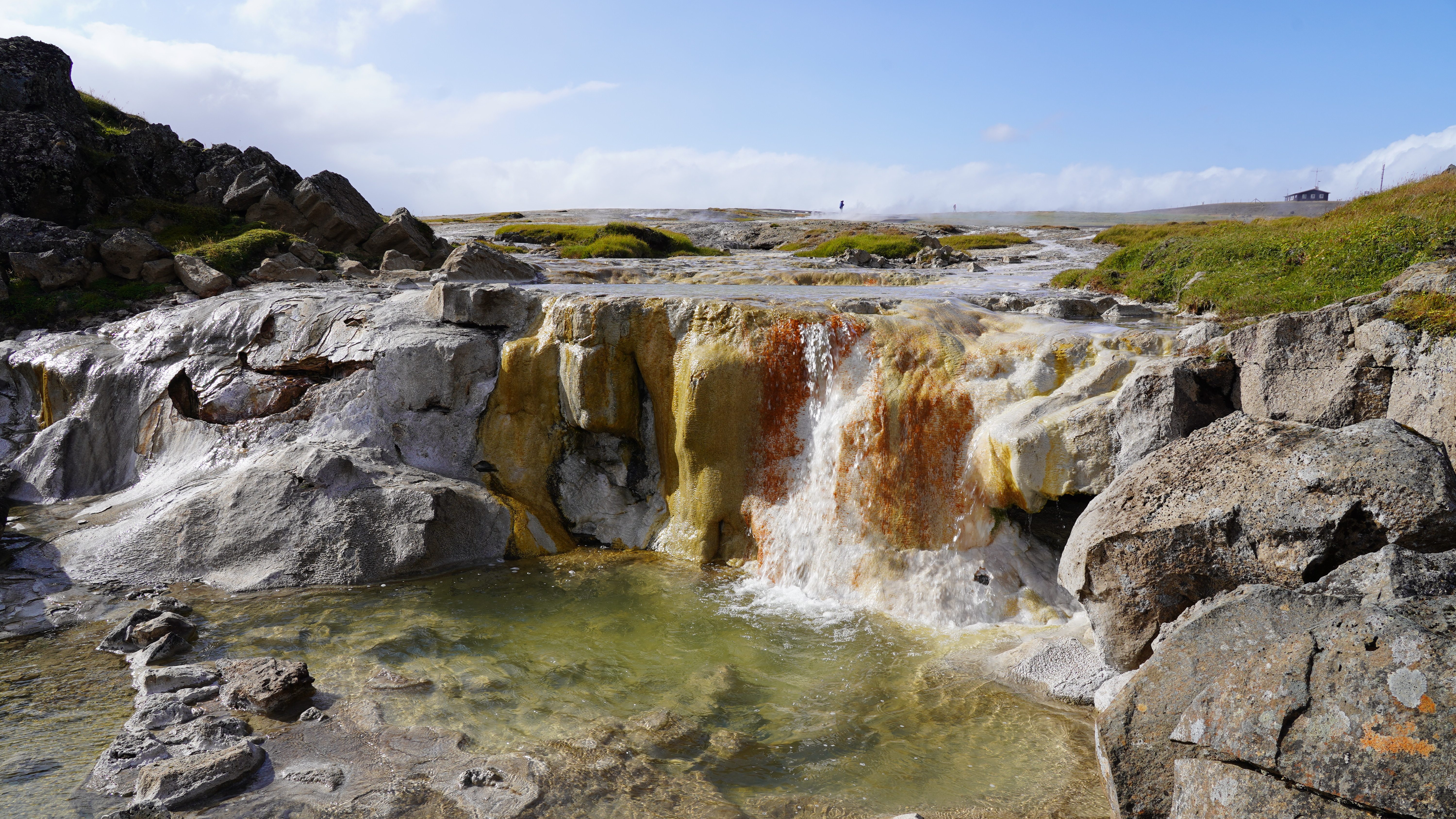 Auf der Wohlfühlebene schliessen wir unseren Aufenthalt auf Island mit einem Bad im Hotpot bei der Laugarfell Highland Hostel im nahen Hochland ab. In aller Ruhe können wir im warmen Thermalwasser bei saisongerechtem Schneeregen noch einmal die Stille, die Einsamkeit und die Weite Islands geniessen.