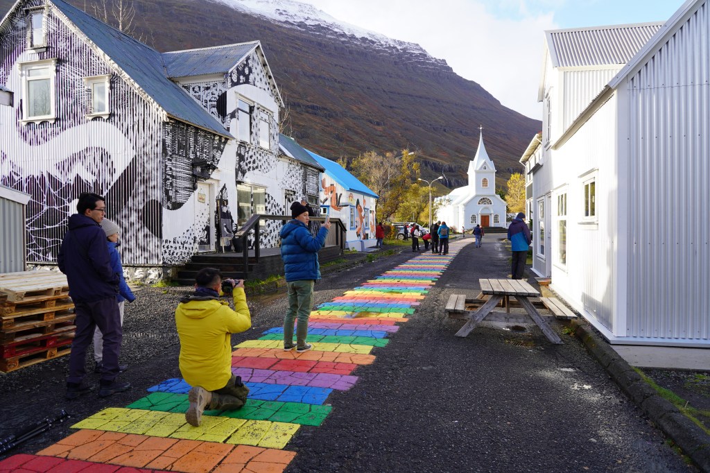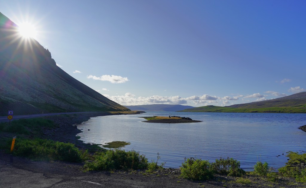 Trotz der aktuellen Wettersituation freuen wir uns auf die seit Beginn der Reise auf unserem Programm stehende Fahrt über den östlichen Teil des Arctic Coast Way. Zielstrebig legen wir die Strecke bis nach Egilsstaðir und weiter nach Bakkagerði am Borgarfjörður Eystri zurück. Obwohl Bakkagerði nicht am Arctic Coast Way liegt, haben wir uns für einen Aufenthalt in diesem kleinen Küstenort entschieden. Einerseits soll hier – und ausschliesslich hier – am nächsten Tag sieben Stunden lang die Sonne scheinen. Andererseits ist der Ort für seine Vogelfelsen bekannt.