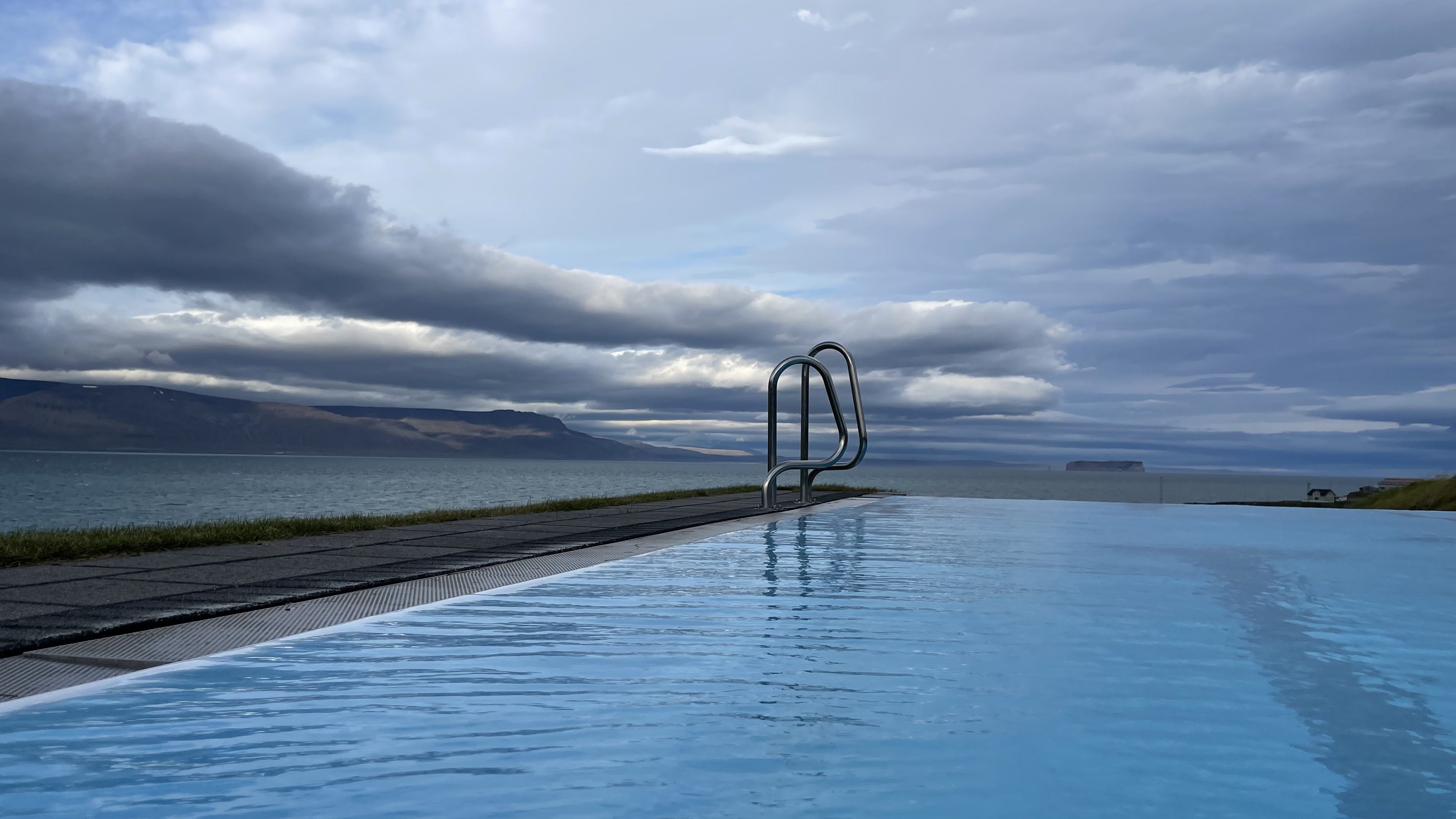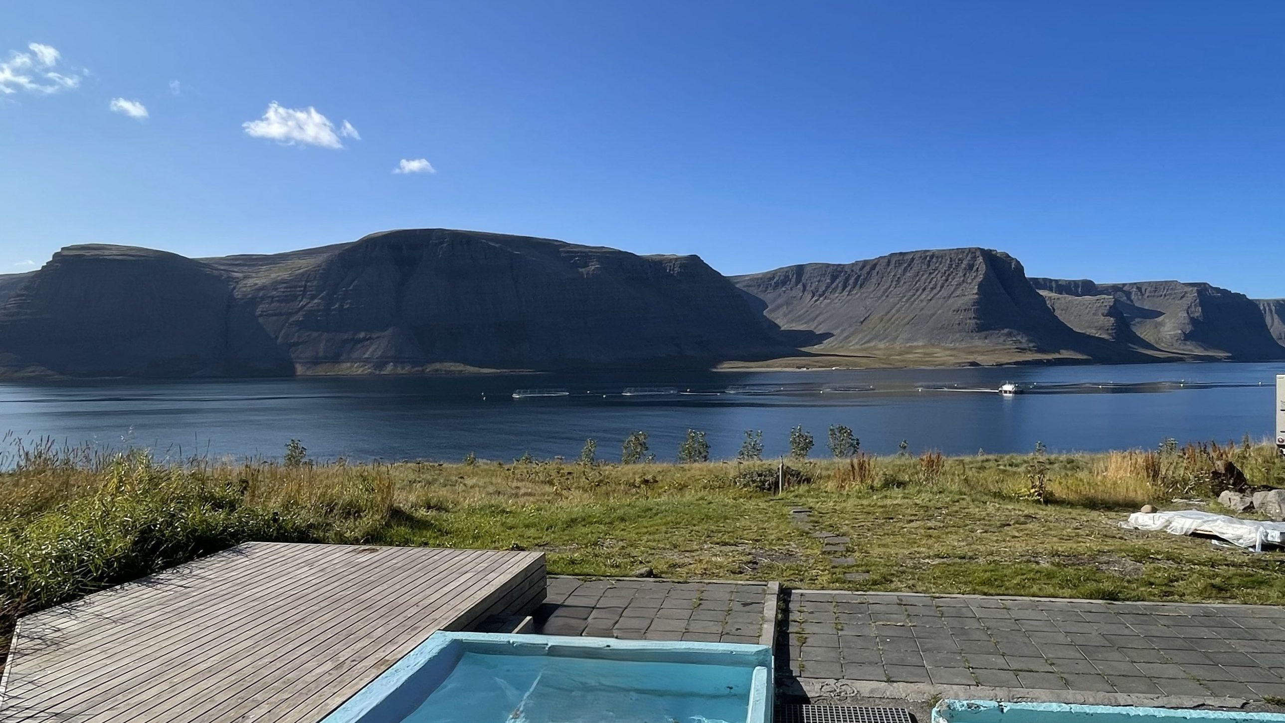 Unsere Fahrt über den östlichen Teil des Arctic Coast Way beginnt am nächsten Tag in Húsavík. Wie schon im August fühlen wir uns in dieser kleinen, betriebsamen Hafenstadt sehr wohl. Den Luxus eines Bades in einem «gehobenen» Thermalbad haben wir bis dato aufgeschoben. Das Thermalbad GeoSea in Húsavík scheint uns nun der richtige Ort zum richtigen Zeitpunkt, um dieses Versäumnis nachzuholen. Das GeoSea stellt sich als gute Wahl heraus. Die Architektur ist erstklassig, der Empfang herzlich, die Einrichtung top modern und alles ist blitzsauber. Darüber hinaus ist die Sicht vom Infinity Pool aufs Meer unschlagbar. Tiefenentspannt verlassen wir diese Wohlfühlinsel nach ein paar Stunden und runden den Tag beim Campingplatz 66.12° North mit einem Glas Wein ab.