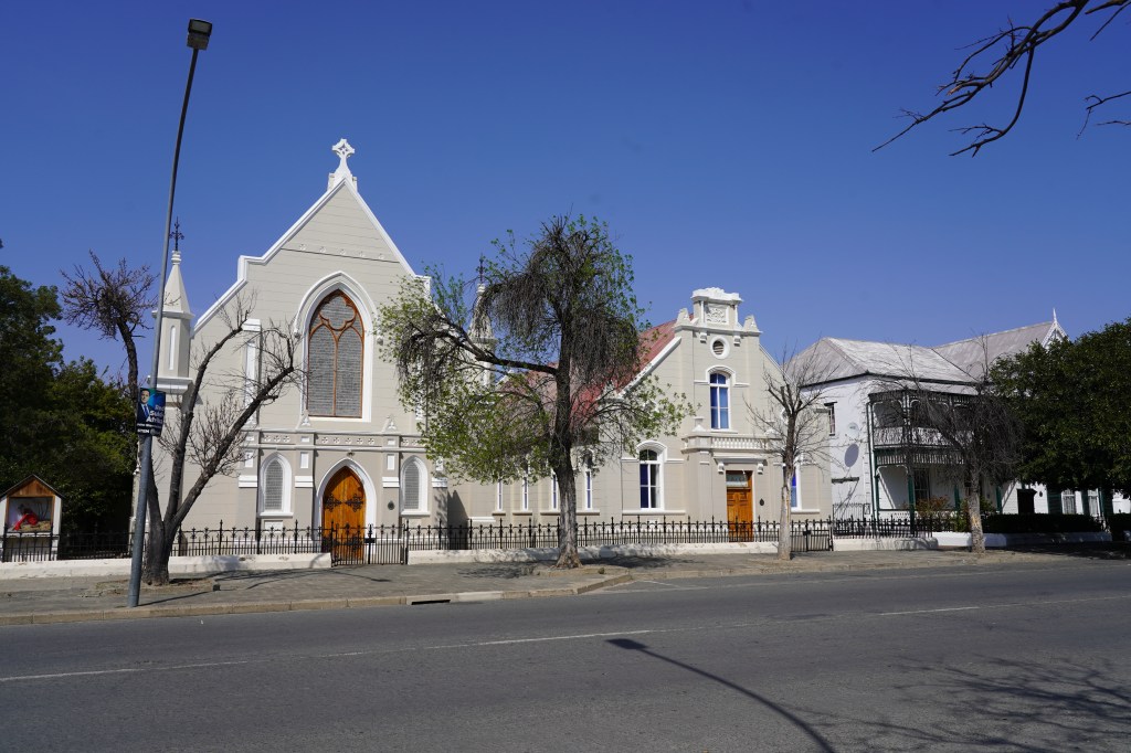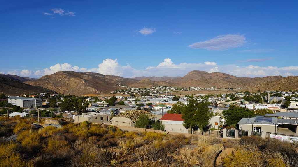 Wir erleben die Stimmung im Städtchen als offen und hilfsbereit. Es ist jedoch klar spürbar, dass die Bevölkerung unter sich bleiben will. Gesprochen wird Afrikaans und alles ist auf Afrikaans angeschrieben. Reisenden wird auf Englisch Auskunft gegeben, das als eine von den elf Amtssprachen Südafrikas in den Schulen unterrichtet wird.