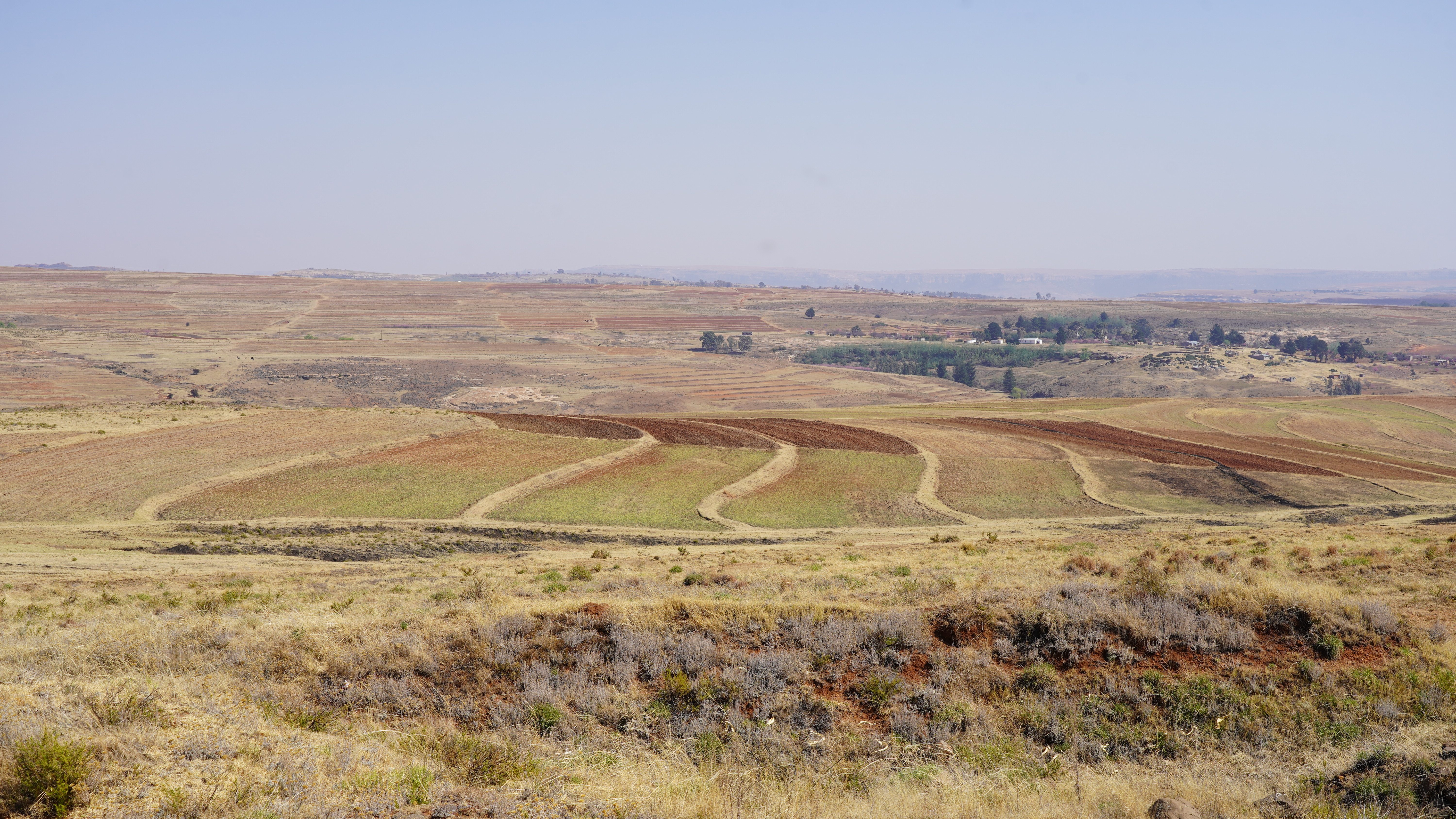 Auf der Fahrt dorthin durchqueren wir von rollenden Hügeln geprägte fruchtbare Landschaften mit weitläufigen Feldern auf denen grossmehrheitlich Getreide angebaut wird. Zurzeit präsentiert sich die Gegend in den sommerlichen Farben abgeernteter Äcker. Die sich weit über den Horizont erstreckenden strohtrockenen Gebiete machen deutlich, dass seit Langem kein Regen mehr gefallen ist.