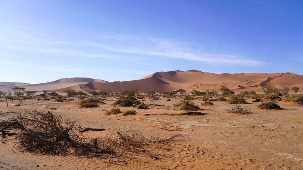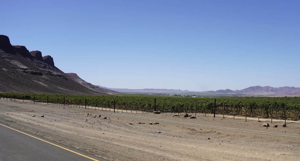In flacheren Gegenden treffen wir riesige Straussenherden an, während wir in weiter nördlich und höher gelegenen, deutlich kühleren Gebieten Apfel- und Birnenplantagen durchqueren, da hier die für den Anbau dieser Früchte erforderlichen klimatischen Voraussetzungen mit ausreichend Frost gegeben sind.