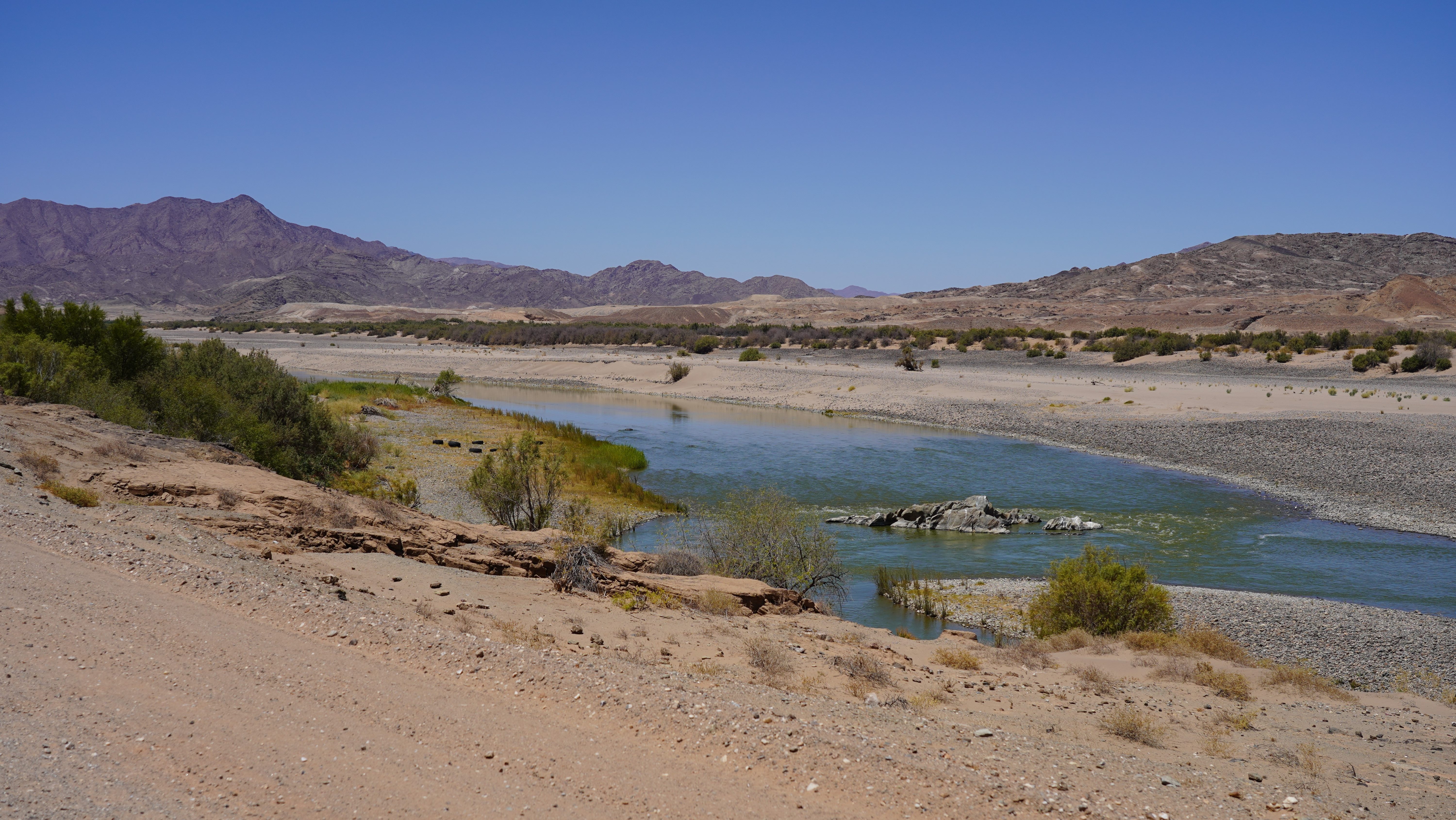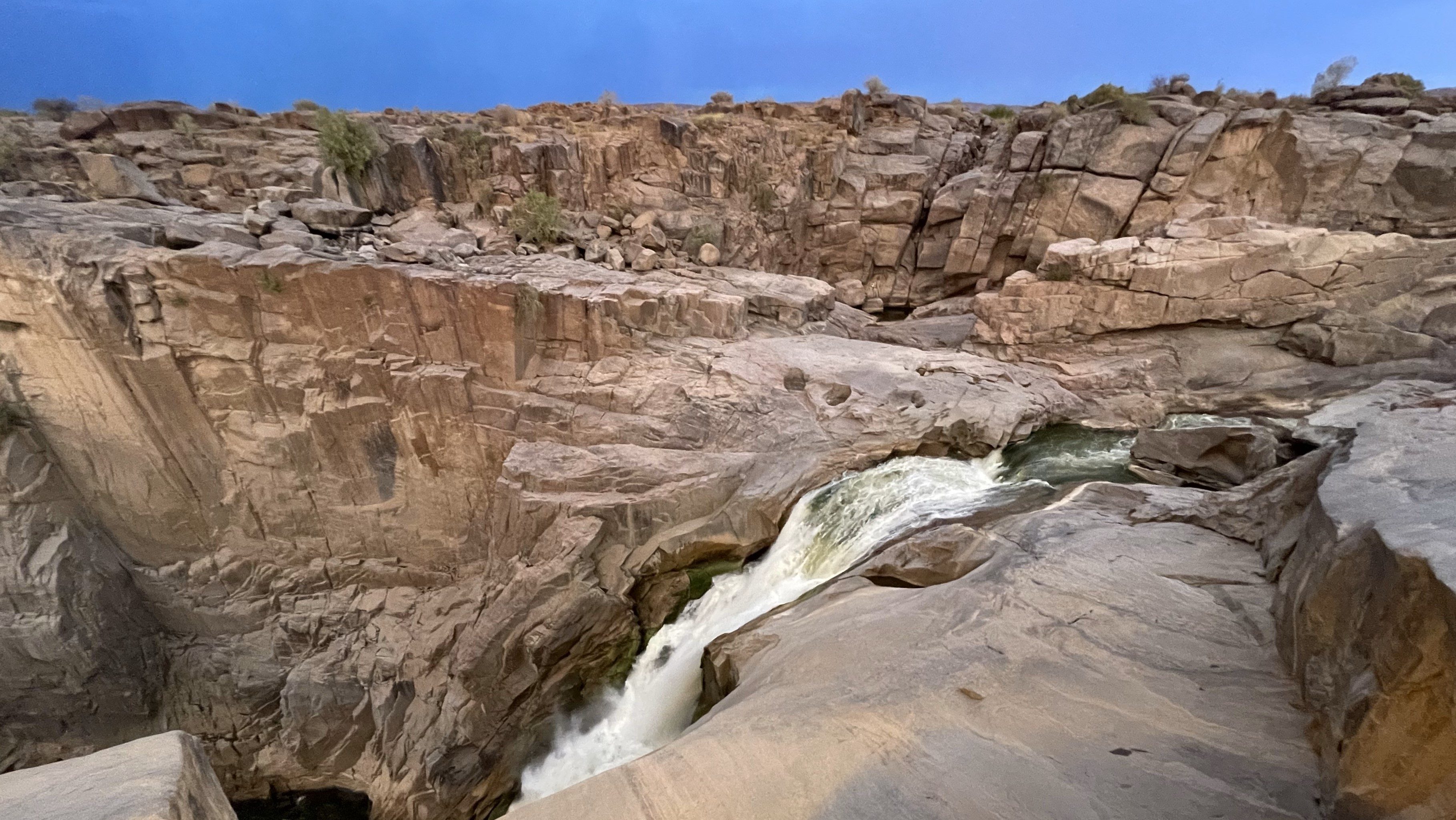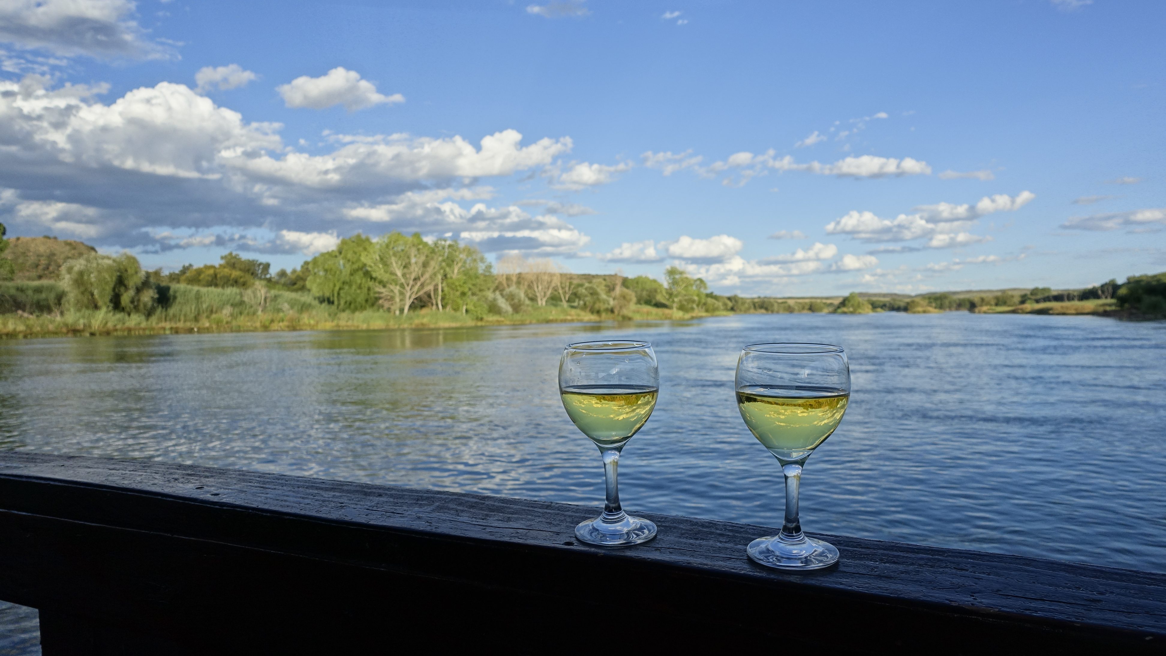 Auf einer abendlichen vom Besitzer des Hotels durchgeführten Fahrt auf dem Orange River stossen wir auf unsere neuen Visa an. Dabei können wir uns mit Leuten unterhalten, die sich von dieser eigenwilligen Stadt ebenfalls ein eigenes Bild machen wollen.