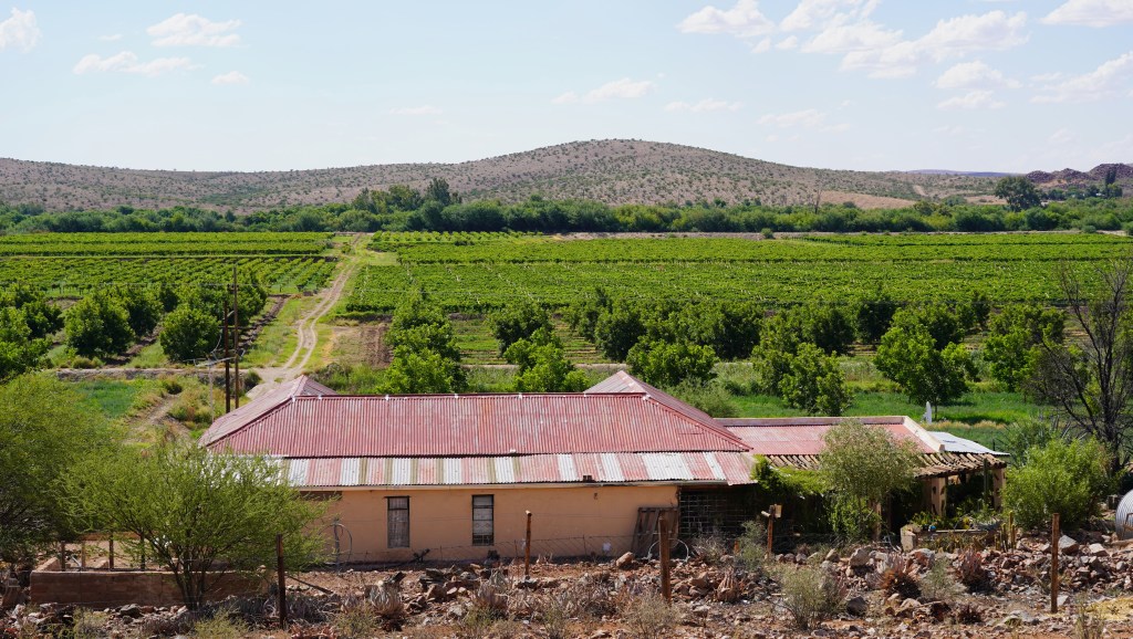 Ab Oudtshoorn, der Hauptstadt der Strausse, folgen wir der Route 62, die von Osten kommend durch die malerischen Ortschaften der Kleinen Karoo nach Westen führt. Einen besonderen Charme hat für uns das kleine, unauffällige Städtchen Calitzdorp. Das Gebiet ist dank dem Wasser des Gamka Rivers und seinen Zuflüssen sehr fruchtbar und eignet sich für den Anbau von Weinreben. Neben den in der Gegend üblichen Rot- und Weissweinen wird hier auch ein qualitativ hochstehender Süsswein (Portwein) produziert.