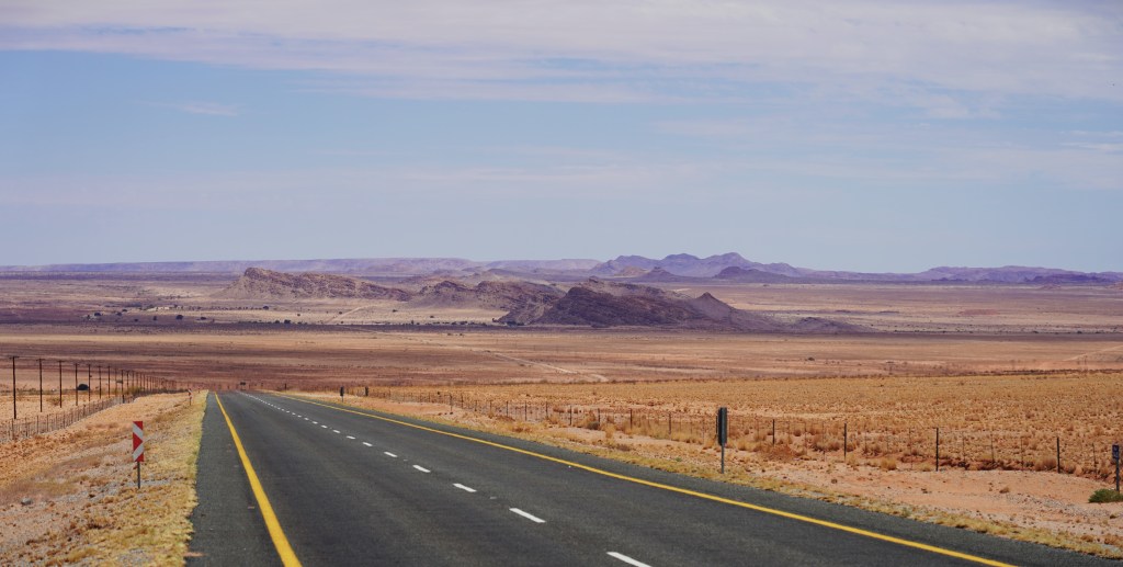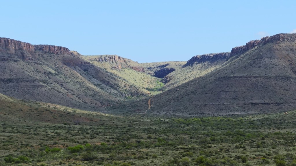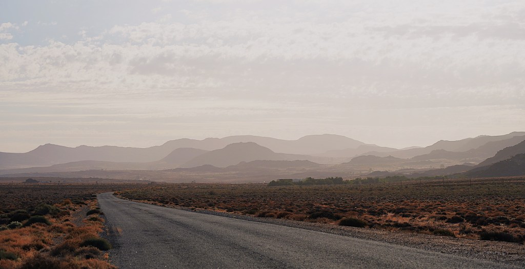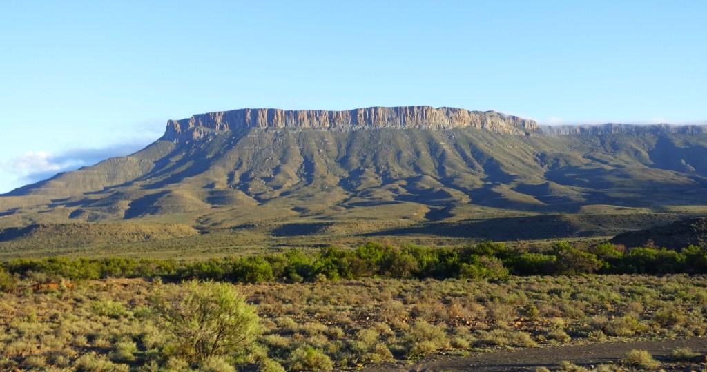Für die Fahrt in den Norden wählen wir die landschaftlich attraktive Strecke, welche die Überquerung der Outeniquaberge mittels Outeniqua- und Potjesbergpass nach Uniondale beinhaltet. Dann führt uns die Route zwischen den Ausläufern des Swartberggebirges zur Linken und dem Antoniesberg zur Rechten nach Willowmore, Aberdeen und über Graaff Reinet. So erreichen wir den Haupteingang des Mountain Zebra National Parks von Norden.