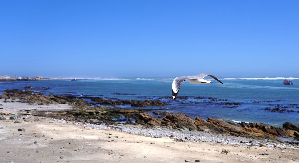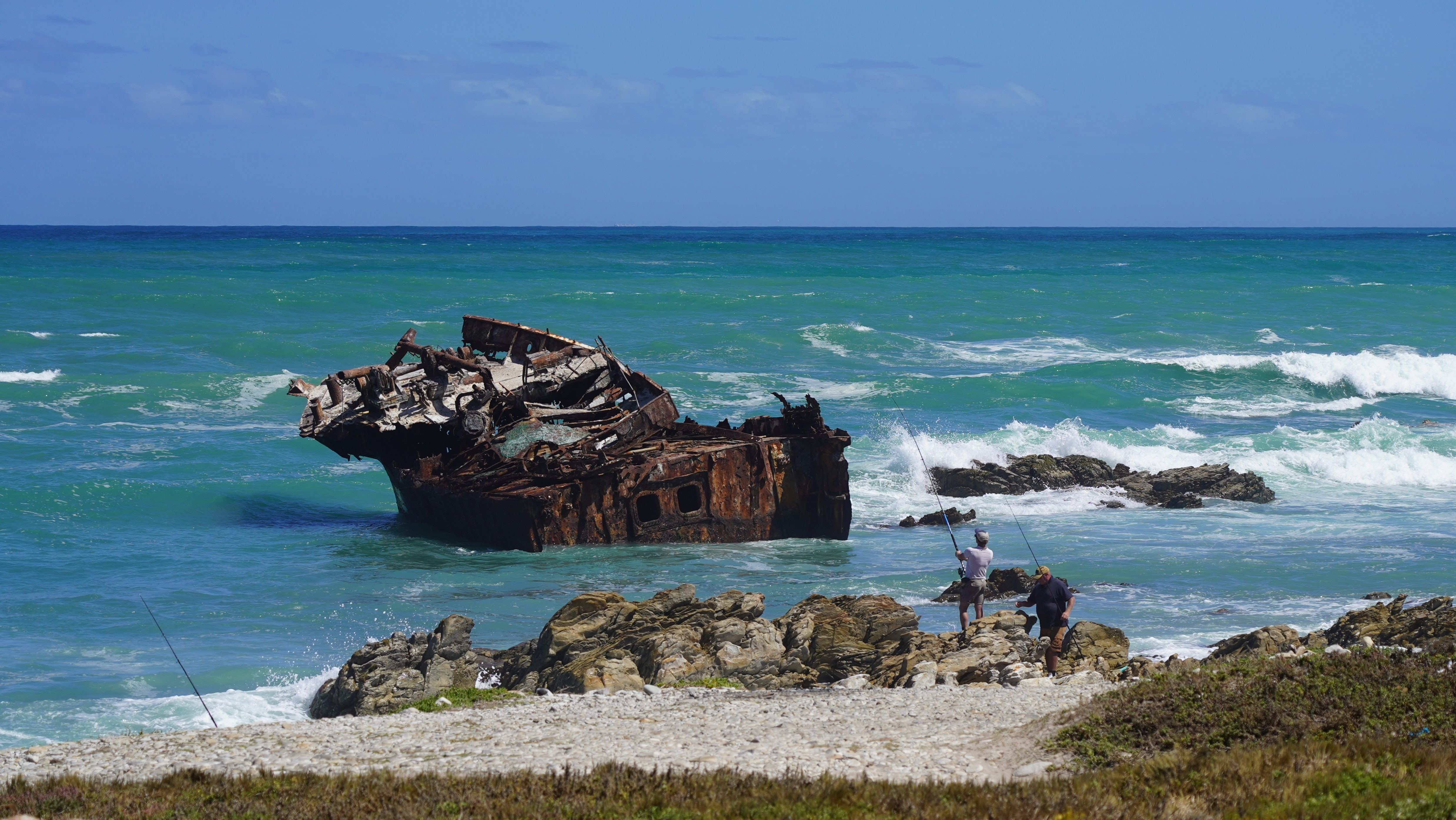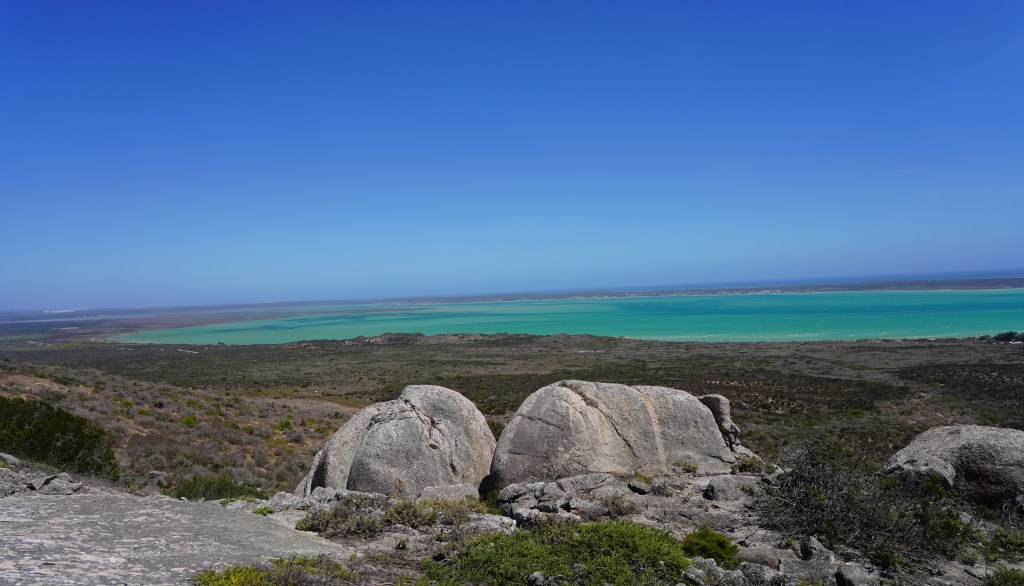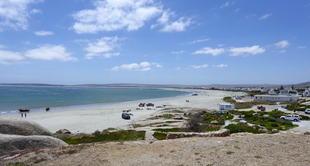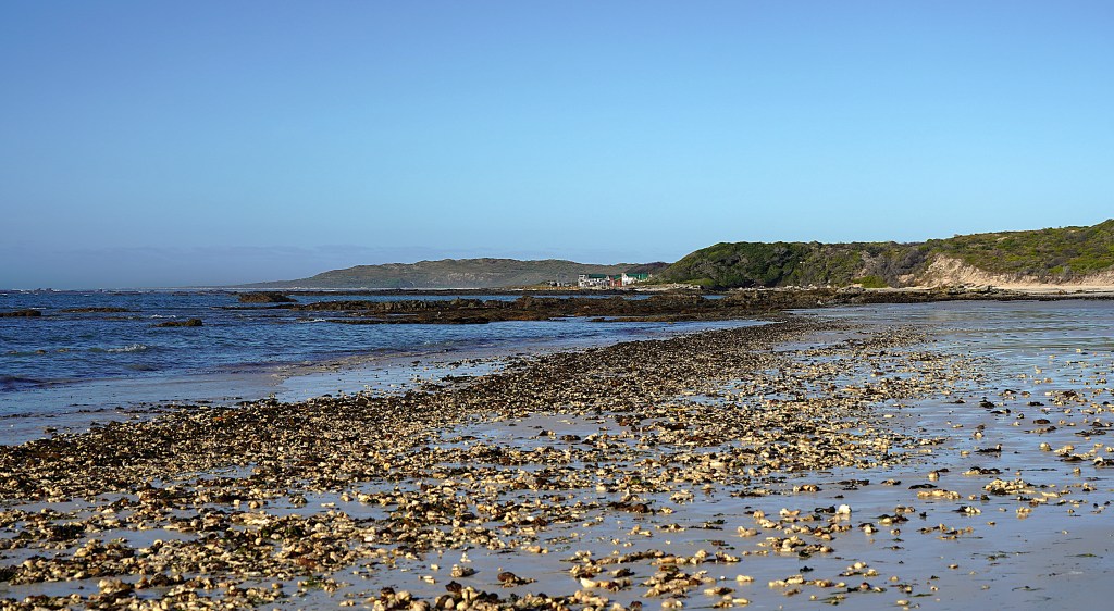 Unser Ziel ist der Agulhas National Park, in dem sich mit Cape Agulhas der südlichste Punkt des afrikanischen Kontinents befindet. Dementsprechend wechseln wir in Hawston die Richtung und fahren der Küste entlang Richtung Osten. Bald schon erreichen wir Hermanus, das von Juni bis November fantastische Walbeobachtungen verspricht. Seine weitläufigen Sandstrände sind hauptsächlich bei Touristen aus dem nahen Cape Town beliebt. Die Hauptattraktion des gut 50 Kilometer weiter östlich liegenden Gans Bay ist indessen das «Haikäfigtauchen». Da für Walbeobachtungen aktuell der falsche Zeitpunkt ist und wir dem Tauchen in Käfigen keine Sympathien abgewinnen können, fahren wir weiter zum weithin unbekannten Quoin Point Nature Reserve, wo wir die Ruhe und Abgeschiedenheit der weitläufigen Campsite einzig mit zwei südafrikanischen Fischern teilen.