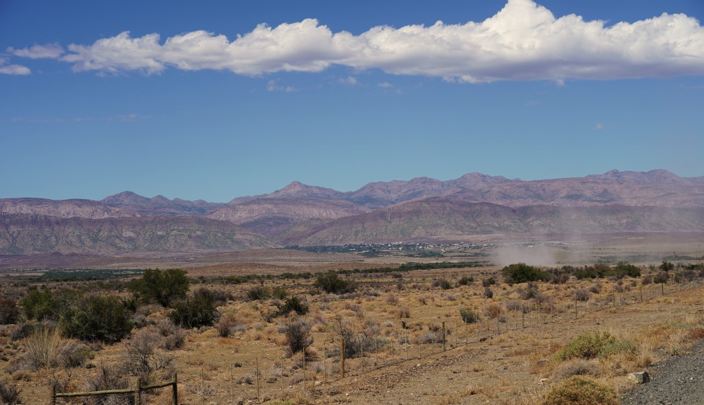 Je weiter wir uns unserem Ziel nähern, umso halbwüstenartiger wird die Landschaft, bis wir nördlich von Willowmore wieder in der Grossen Karoo unterwegs sind.