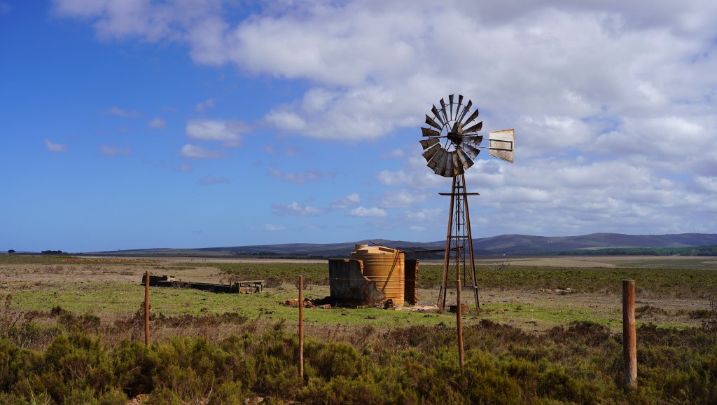 Nach der touristisch hochentwickelten Umgebung des Kap-Weinlandes zieht es uns wieder in diesbezüglich weniger aktive Gegenden. Wir entscheiden uns, die Weinregion über den Franschhoek Pass zu verlassen. Auf der anderen Seite der Franschhoek Berge überqueren wir den Theewaterskloof Stausee bei Villiersdorp und fahren auf direktem Weg an die Südküste.