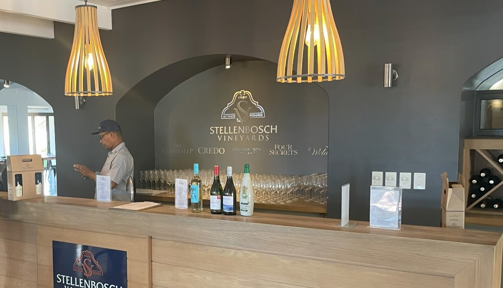 Unsere Erkundung der Weinregion starten wir mit einem spontanen Besuch der Stellenbosch Vineyards. Der am Empfang anwesende Herr überrascht uns mit hohem Engagement und ausgeprägter Motivation. Er erklärt uns, wie die Firma Stellenbosch einerseits als Genossenschaft und andererseits als Eigenmarke funktioniert. Wie die verschiedenen Weine zustande kommen, für wen sie bestimmt sind und anhand welcher Überlegungen neue Produkte auf bestimmte Zielgruppen ausgerichtet werden. Auf jede Frage gibt er ausführliche und nachvollziehbare Auskunft. Gute zwei Stunden lang folgen wir den Ausführungen des offensichtlich weitgereisten Fachmannes. Versehen mit viel neuem Wissen, guten Tipps für den Besuch weiterer Weingüter und im Besitz von einigen Flaschen Wein, der mit Trauben von alten Reben aus Stellenbosch eigenen Weinbergen gekeltert wurde. Diese erlesenen Weine sind in Europa nicht erhältlich, was sich als bedeutender Nachteil herausstellen sollte…