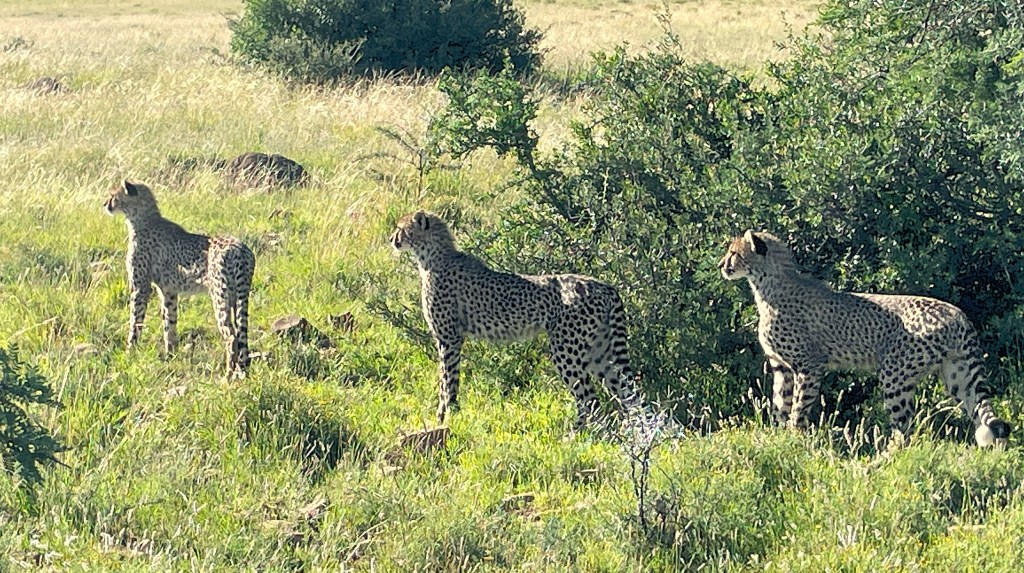 Zum Abschluss buchen wir eine geführte Tour zu den Geparden, von denen mehrere Familien im Park leben. Ein junger Wildhüter führt uns zielsicher zu einer Mutter mit ihren drei Jungtieren. Mit der erforderlichen Behutsamkeit und Vorsicht können wir uns den Tieren zu Fuss bis auf wenige Meter nähern. Die Tour ist ein eindrückliches Erlebnis, das uns wieder einmal bewusst macht, wie fragil und heikel das Zusammentreffen von Mensch und Tier sein kann und wir hier ausschliesslich geduldete Eindringlinge sind.